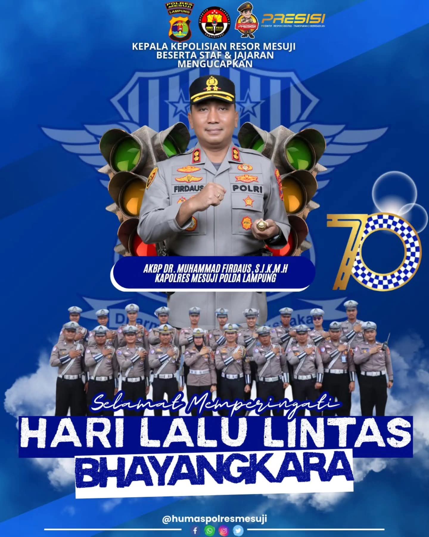 Peringatan Hari Lalu Lintas Bhayangkara Ke-70 ini menjadi pengingat bagi seluruh anggota Polri untuk terus berpegang teguh pada nilai-nilai profesionalisme, integritas, dan pengabdian demi terwujudnya polisi lalu lintas yang PRESISI (Prediktif, Responsibilitas, Transparansi Berkeadilan) dan dicintai oleh masyarakat.
