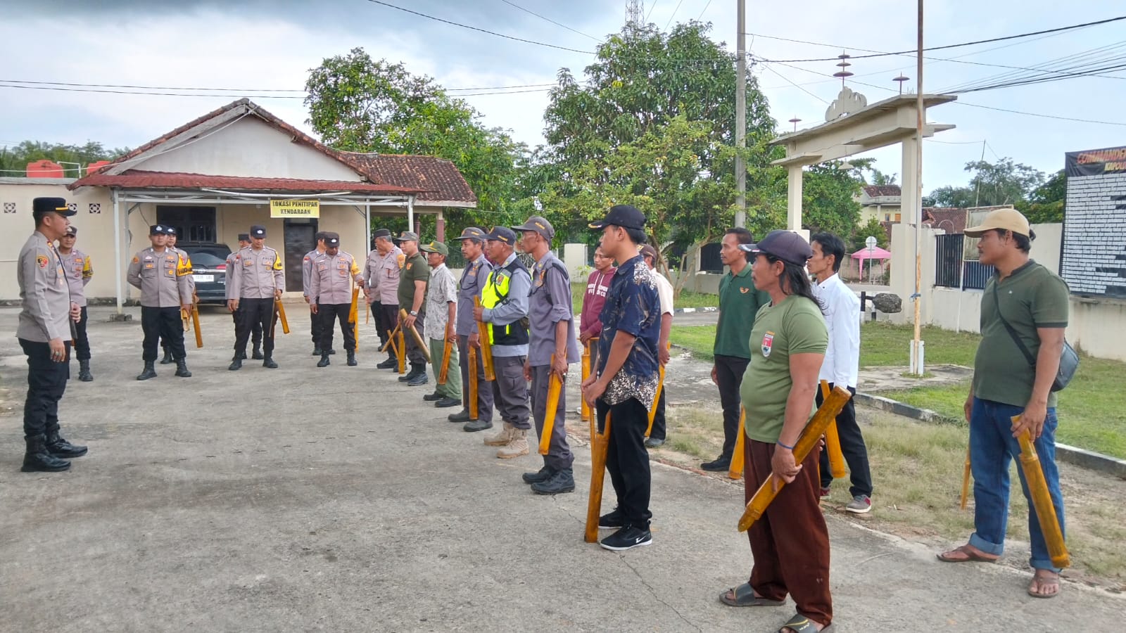 Kegiatan yang berlangsung di Halaman Mapolsek Way Serdang ini dipimpin langsung oleh Kapolsek Way Serdang dan dihadiri oleh Tokoh Masyarakat, Tokoh Agama, serta seluruh personel Satuan Linmas se-Kecamatan Way Serdang, Kabupaten Mesuji, Kamis (16/04/26) Petang